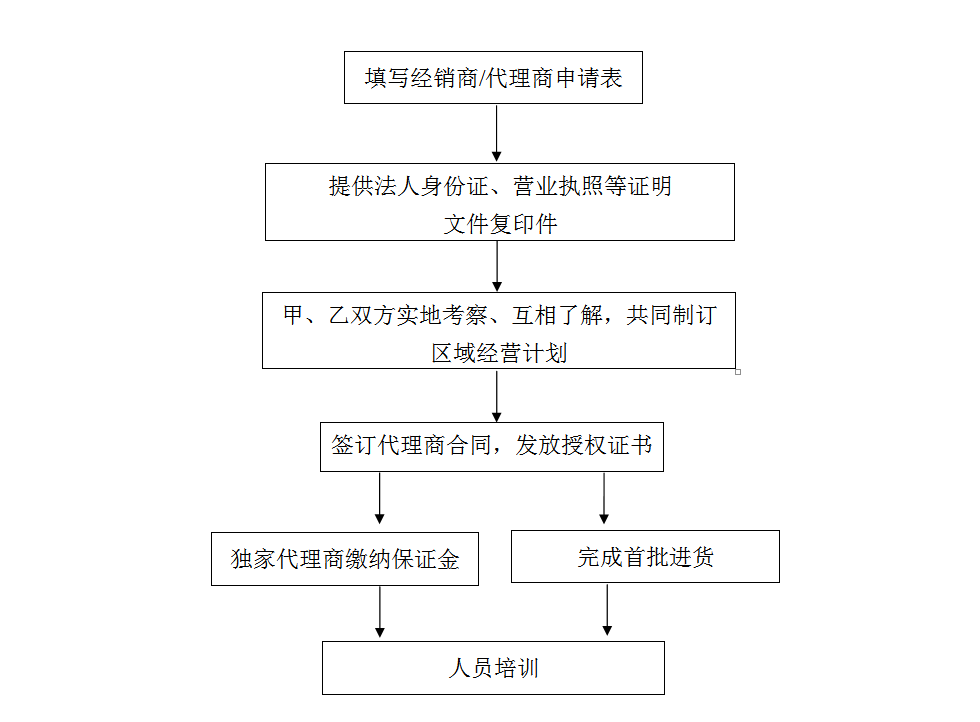 4、簽訂代理合同:公司根據市場調研報告進行審核,審核通過后,由雙方約定時間,邀請加盟者到公司正式簽訂代理合同。